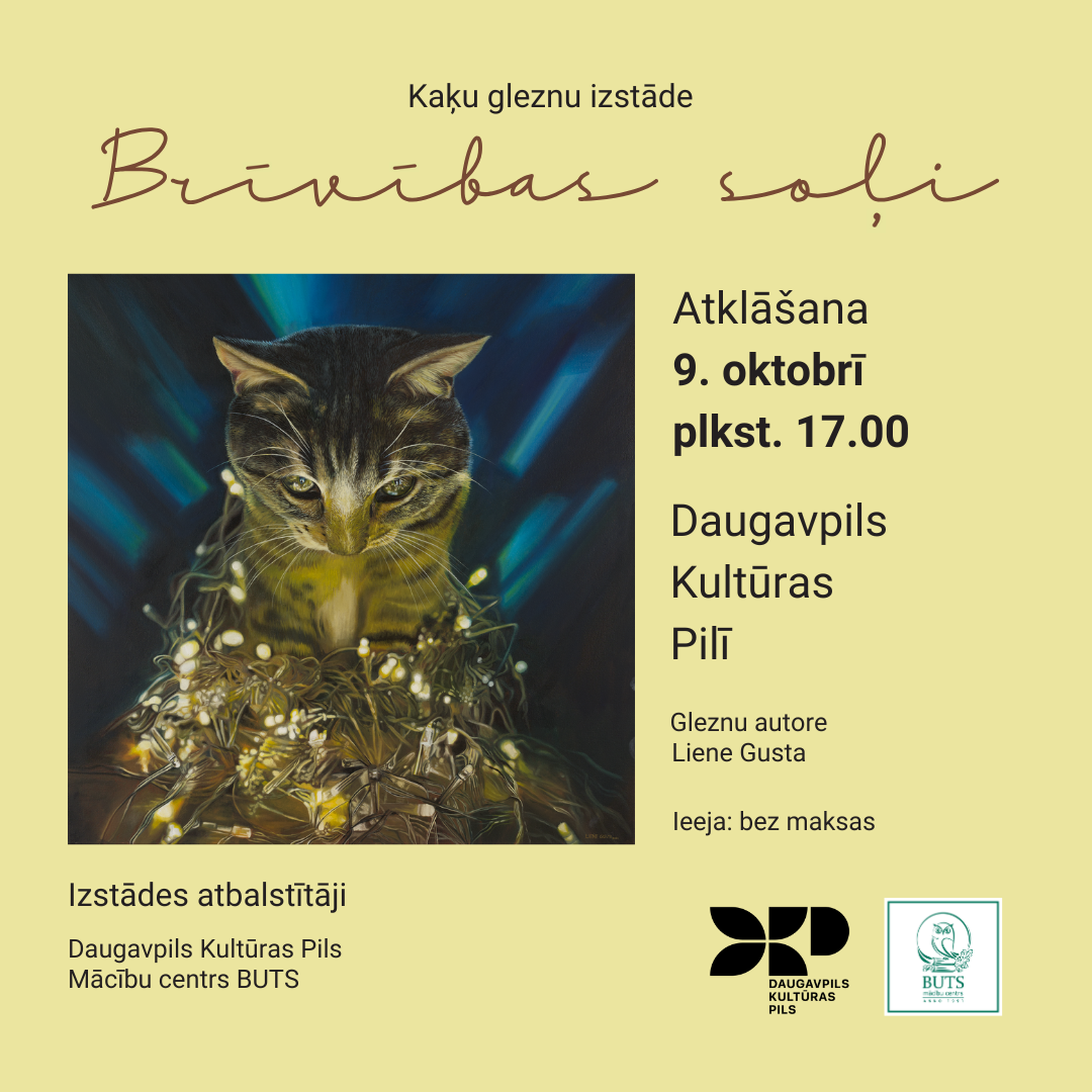 9. oktobrī plkst. 17.00 Daugavpils Kultūras Pilī tiks atklāta lielformāta eļļas gleznu izstāde "Brīvības soļi", kurā valda kaķu elegance un noslēpumainība.