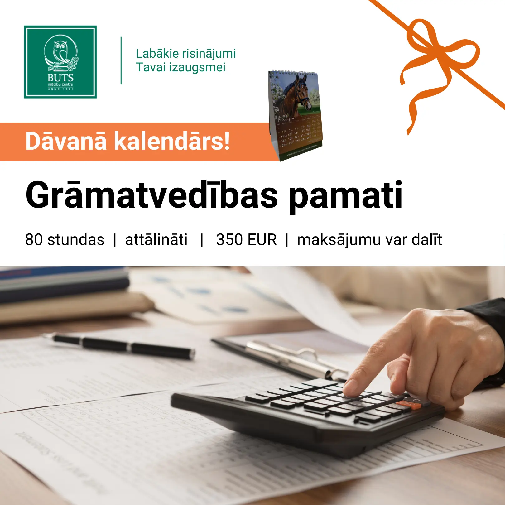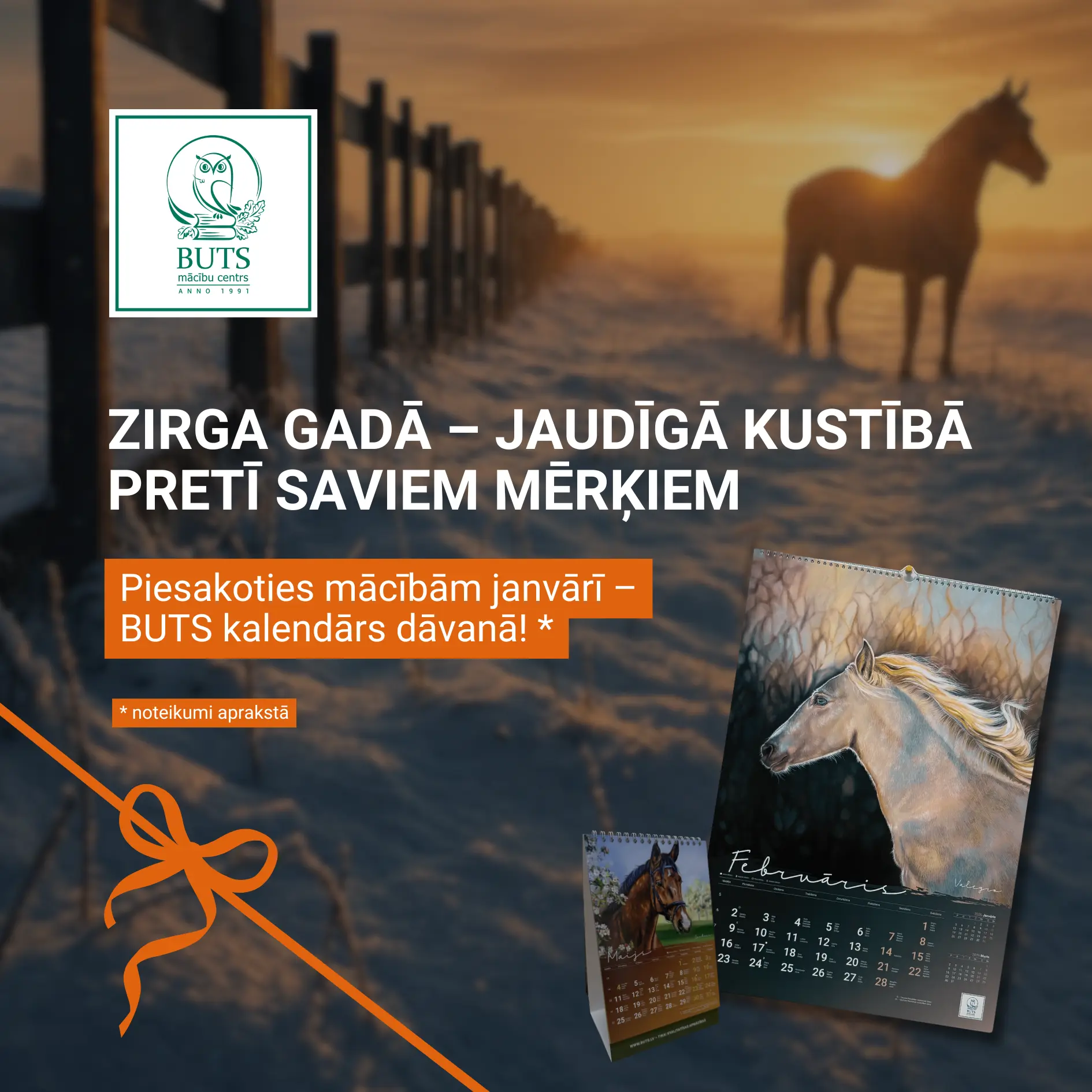 Pirmajiem 50, kuri pieteiksies kādam no zemāk minētajiem kursiem, dāvināsim mākslinieces Lienes Gustas ilustrētu kalendāru 2026. gadam. Kalendāru rotā skaistas zirgu gleznas – tieši Zirga gads simbolizē spēku, mieru un neatlaidīgu došanos uz priekšu pretī mērķiem!
