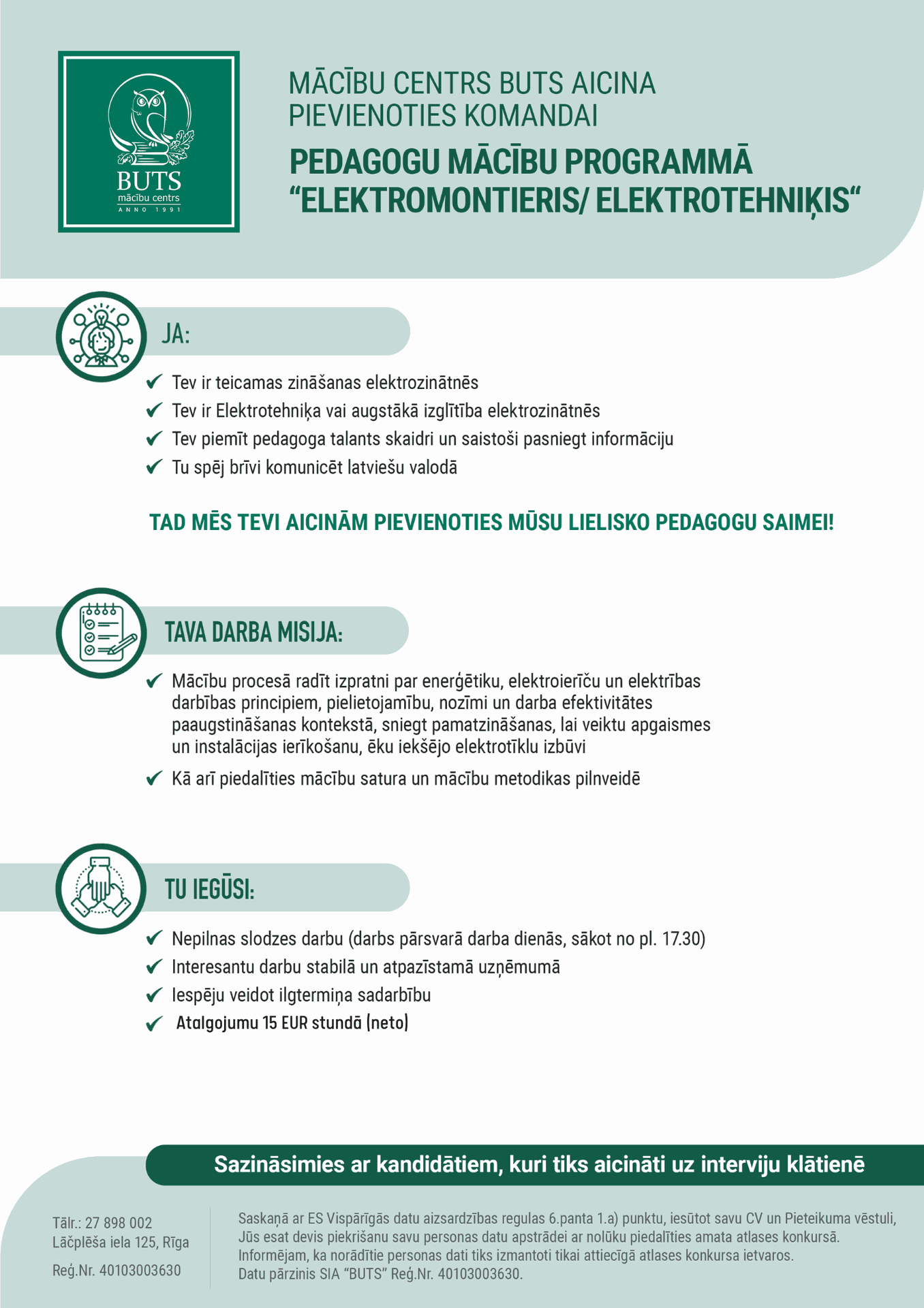 Pasniedzējs(-a) mācību programmā "Elektromontieris / Elektrotehniķis"